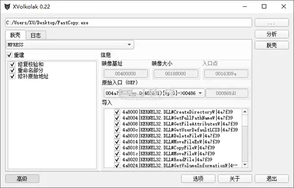跨平台支持:尽管当前版本主要面向Windows用户,但Xvolkolak能够模拟Intelx86和AMD64处理器,不仅支持32位和64位Windows可执行文件的脱壳,理论上在32位操作系统上也能脱壳64位文件。