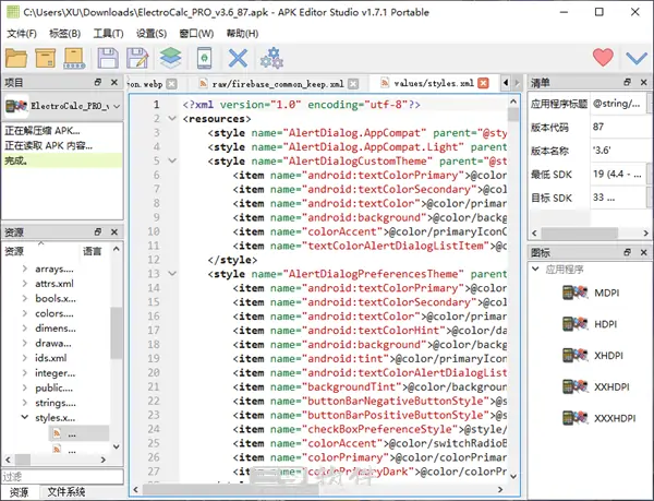 作为一款全能型工具,它的核心功能足以覆盖绝大多数人的需求。首先是资源可视化编辑,打开 APK 文件后,工具会以树形结构展示内部所有资源,无论是替换应用图标、修改启动画面,还是编辑界面文字、替换图片资源,都能直观操作,实时预览效果。对于新手来说,无需了解 APK 内部结构,就能轻松打造专属视觉风格。