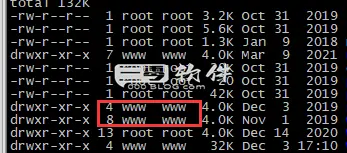 有了FTP账号信息之后,还要检查网站目录的用户组和读写权限是否正确配置,可以使用“ls-lh”命令可以查看服务器上文件目录用户组属性,WordPress相关目录的用户属性一般为“wwwwww”,可以参考下图: